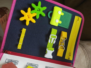 Cartea include activități practice precum închiderea fermoarelor și legarea șireturilor, care stimulează coordonarea ochi-mână și abilitățile motorii fine.