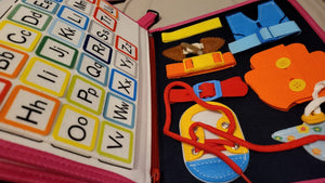 Carte Senzorială Educativă Montessori, Flippy, Dezvoltare Abilități Motorii, 5 Pagini.